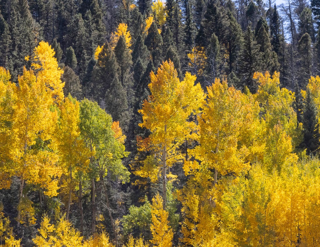 Two weeks later, Steve and I drove up to close the cabin for the winter. Although there was still beauty to be seen, I was very pleased that I’d made the earlier trip, as most of the aspen colors were gone.