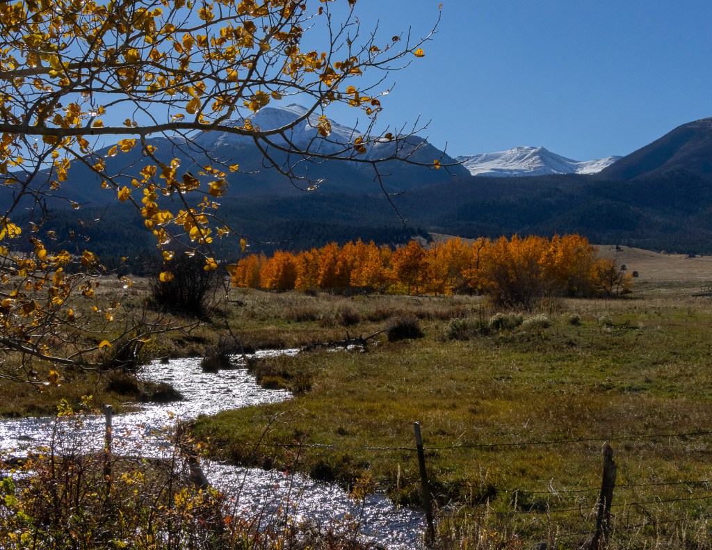 We’d discovered a particularly beautiful place to see the colors a few years back, so instead of taking the highway all of the way into Westcliffe, I veered off onto a county road. I can’t tell you how many times I stopped to take photos. The colors were truly splendid. Once I got into the valley, the awe continued.
