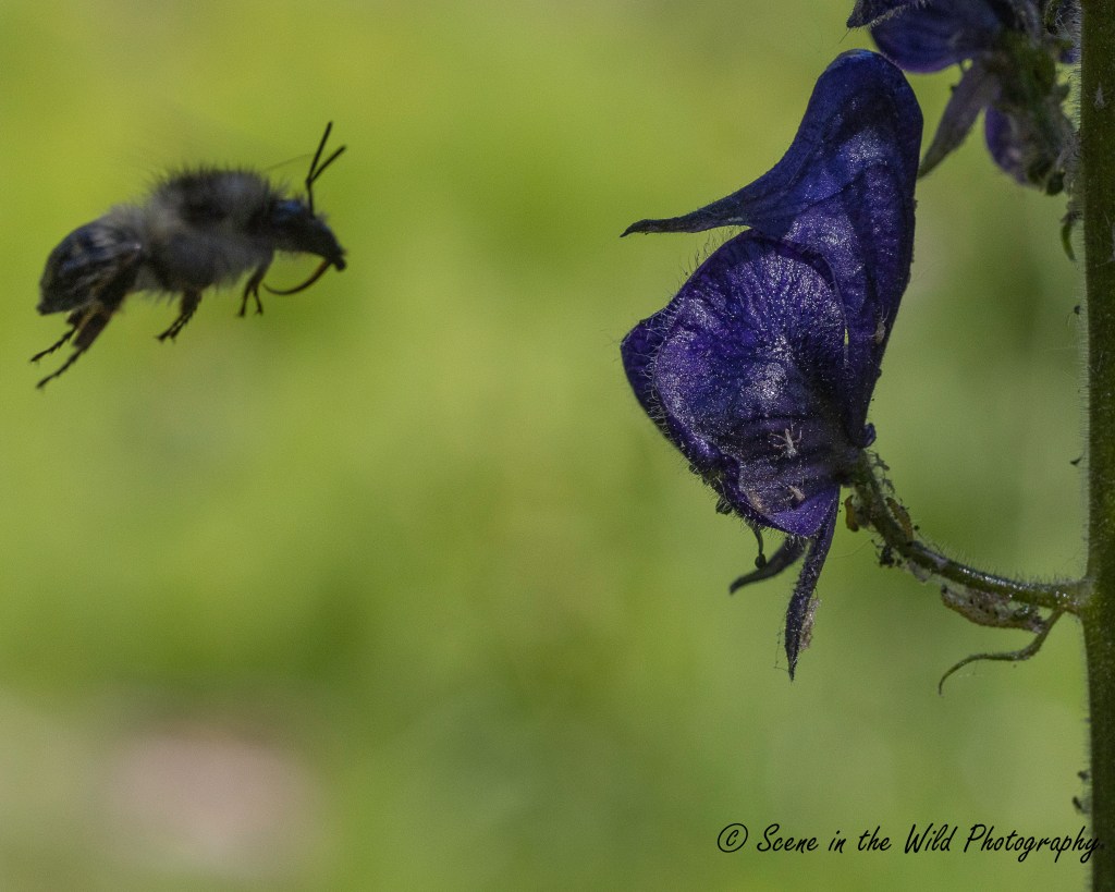 Bumblebee visiting Monkshood flower July 5, 2025